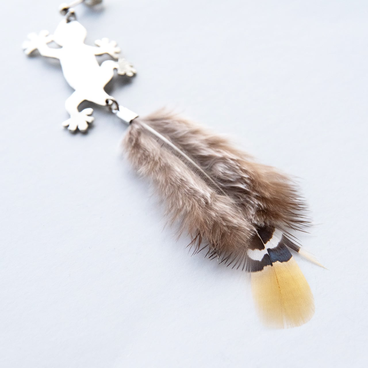 しっぽは個性が出るように、鳥の羽の色を生かしています。
