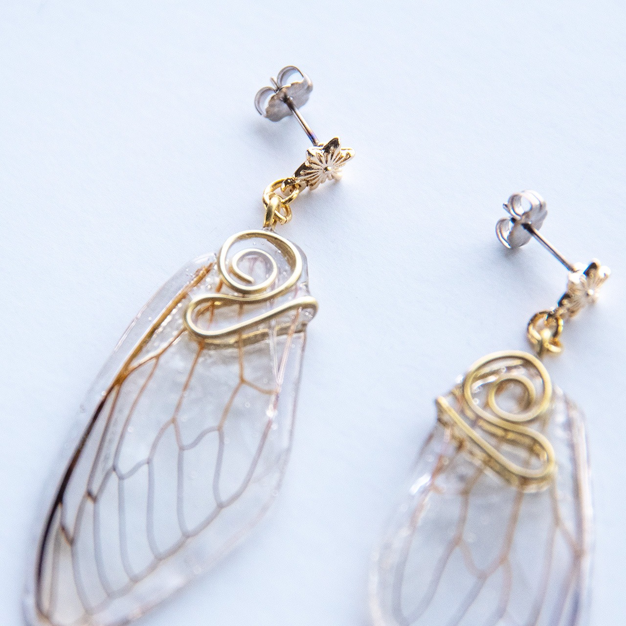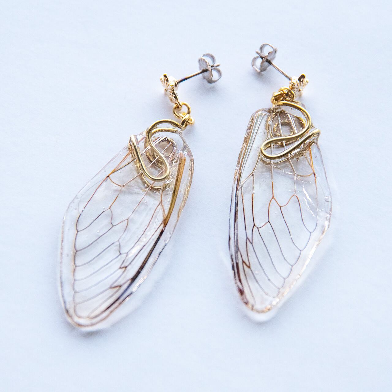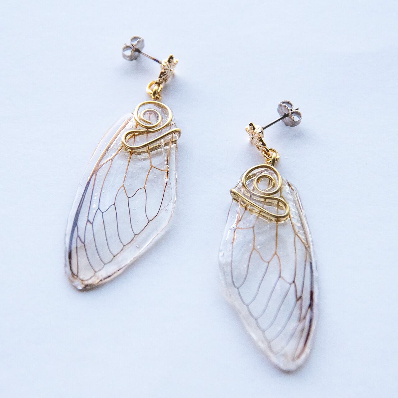 本物の蝉の翅を使用したピアスです。